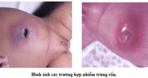 - Rốn sưng to, đỏ lan rộng, chảy nhiều mủ.