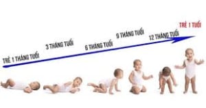 - Phát triển vận động: 3 tháng: biết lẫy; 6 tháng: biết ngồi; 9 tháng: biết bò; 12 tháng: có thể biết đi vài bước.